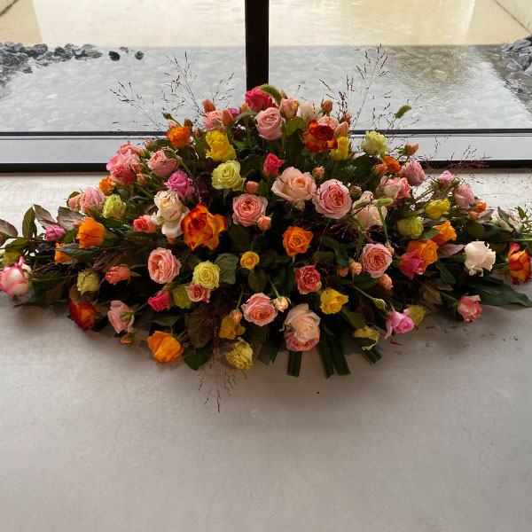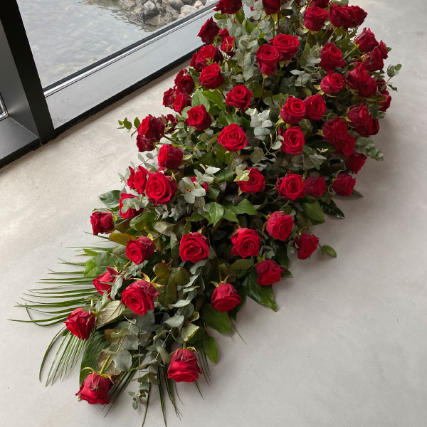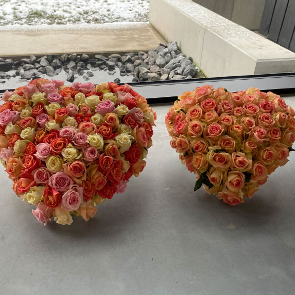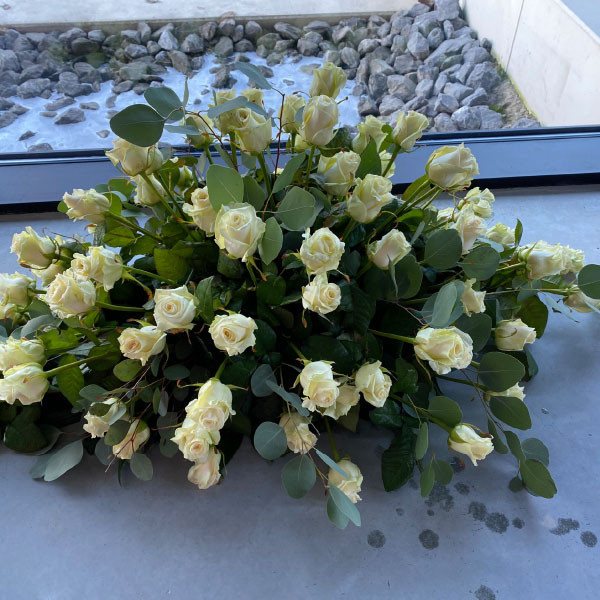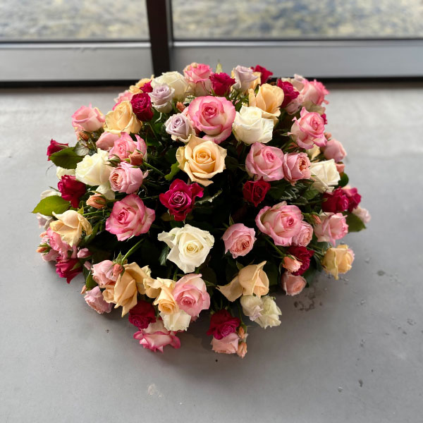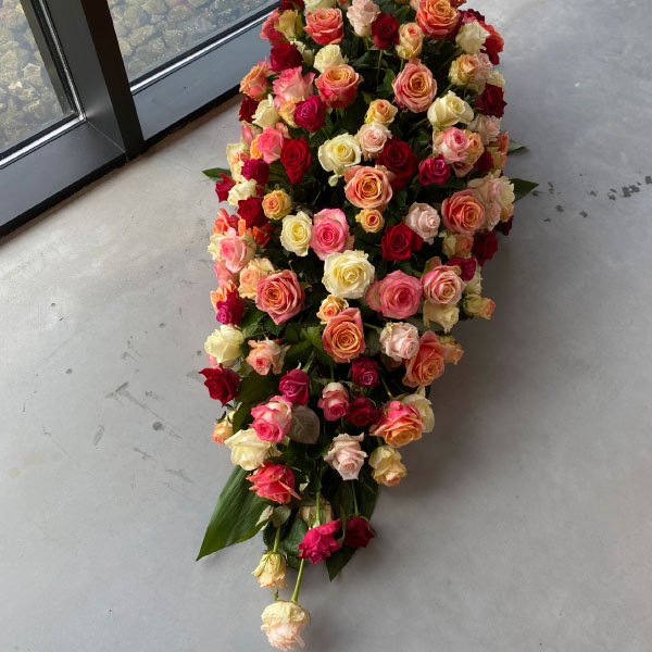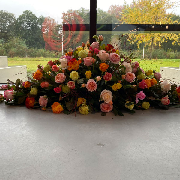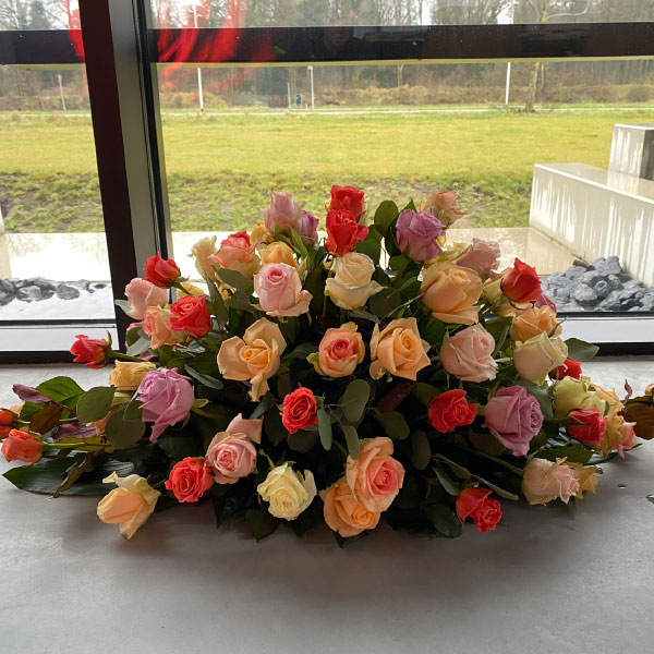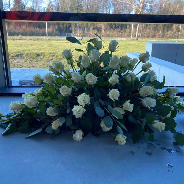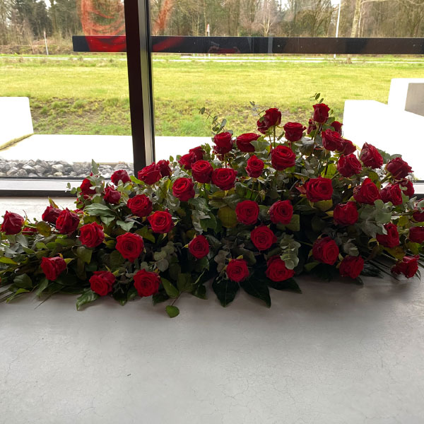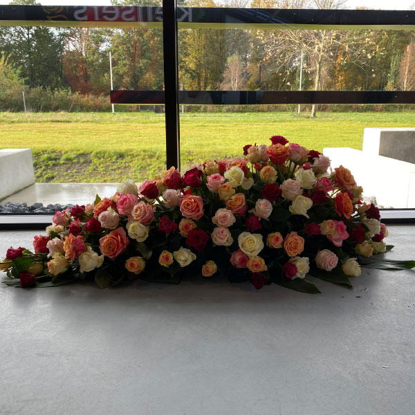 We maken rouwwerk op maat, uitsluitend met rozen. De stukken dienen zelf opgehaald te worden. De grootte en kleuren zijn bespreekbaar.